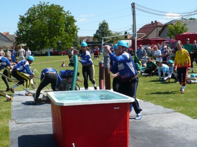 Tradične sa na štart ako prvé postavilo ženské družstvo z Krásna. Podarený útok s kvalitným časom 19,35 s a konečné tretie miesto naznačuje, že by sa im hodila aj ligová príslušnos. Druhé nasledovali ženy z Dežeríc, ktoré útočili na popredné miesta, no problémy s pravým terčom znamenali čas 31,36 s. Po dvoch ženských družstvách nasledovali dva mužské ligové nedokončené útoky. Chalani s Pravotíc nedokázali zostreknúť pravý terč a Podlužanom spôsobil veľký problém nevytiahnutý rozdeľovač.