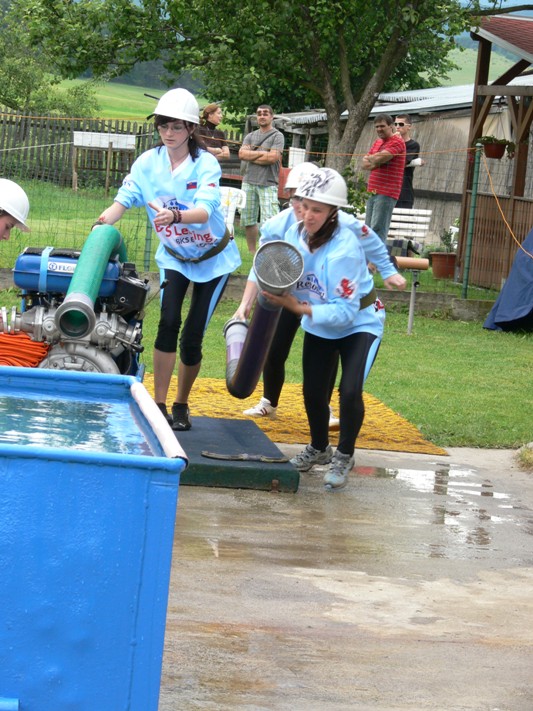 Komplikácie pri svojom pokuse malo aj ďalšie mužské družstvo –  Lednické Rovne. Problémy s natáčaním koša sa odrazili na výslednom čase 25,78s. Družstvo z Poriadia predviedlo pekný výkon a dosiahli čas 14,93s. Po nich si základňu pripravovali minuloročné víťazky ligy, baby z Nedašovej Lhoty. Ľavý terč sa zastavil na obdivuhodných 16,85s avšak prestrek na pravom prúde spôsobil s časom 19,26s až konečné 7. miesto. Rad prišiel na ženy z Pečenian, ktoré mali suverénny štart, ale veľká vzdialenosť pravej prúdarky od terču nakoniec znamenala čas 26,78s.