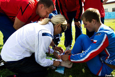 Nejdůležitější však bylo, co Františkův kotník, protože regule šampionátu nepovolují nasazení náhradníka. Během čtvrt hodiny po obstřiku, ledování a zatejpování následovalo pomalé rozhýbání a nakonec rozhodnutí nastoupit ke druhému pokusu. Výsledek 59,79 znamenal zlepšení na třetí místo a další bronz pro českou výpravu.